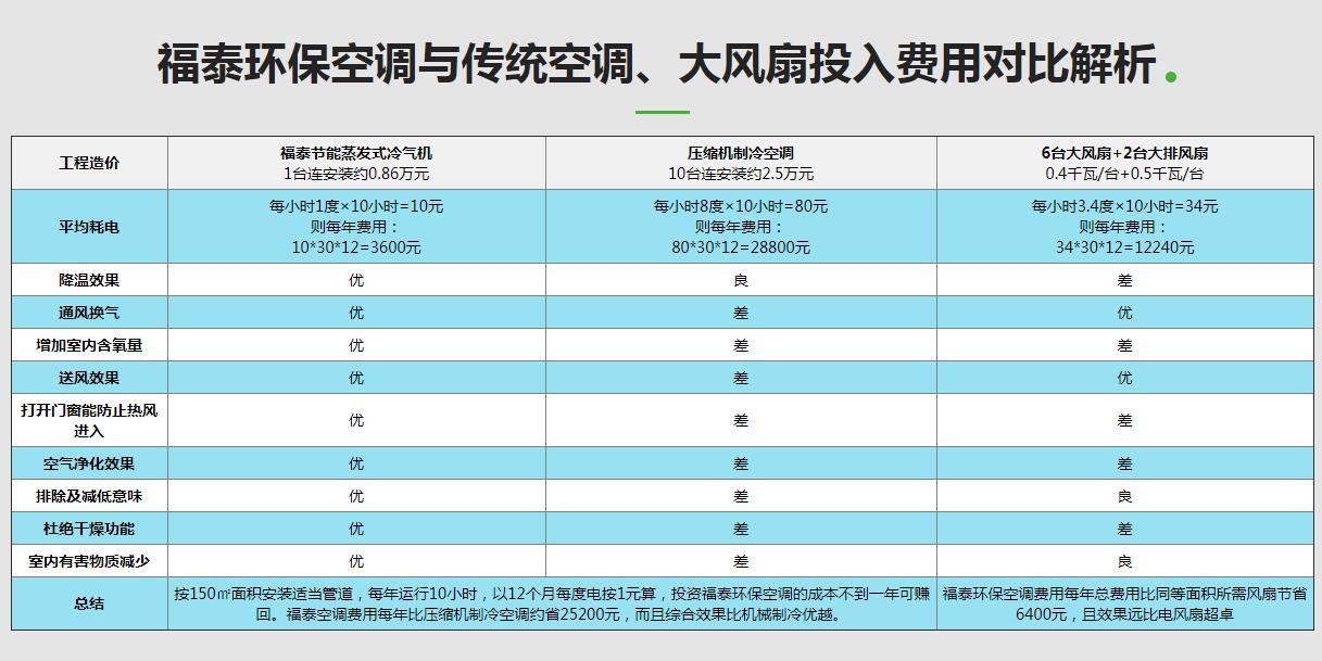實(shí)際的降溫實(shí)際效果與安裝環(huán)??照{(diào)的方案設(shè)計(jì)是有著非常大的關(guān)系的,設(shè)計(jì)方案工業(yè)廠(chǎng)房降溫務(wù)必要明白如何計(jì)算車(chē)間內(nèi)的換氣次數(shù)方式, 及其車(chē)間內(nèi)該怎樣設(shè)置適合的環(huán)??照{(diào)的總數(shù)、輸出功率冷熱空氣的對(duì)流等,亦或是車(chē)間是需要工位降溫或者總體降溫。福泰環(huán)??照{(diào)依據(jù)“水蒸發(fā)氣化需要消耗帶走熱量”這一基本原理來(lái)降溫,戶(hù)外的汽溫越高而環(huán)??照{(diào)降溫實(shí)際效果越顯著。依據(jù)不一樣工業(yè)廠(chǎng)房對(duì)車(chē)間環(huán)境濕度、換汽需求、項(xiàng)目經(jīng)費(fèi)預(yù)算的不同,福泰可依據(jù)客戶(hù)實(shí)際情況定制專(zhuān)屬的型號(hào)規(guī)格的商品及降溫計(jì)劃方案。